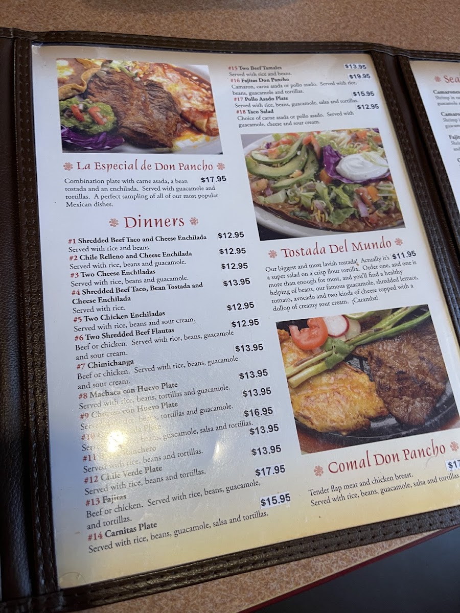The menu at Al Pancho's Mexican Restaurant offers a welcoming and straightforward selection of classic Mexican dishes, perfect for relaxed meals any time of day. Whether you're stopping in for a casual breakfast or gathering for a laid-back dinner, you’ll find comforting flavors and familiar favorites presented with care.